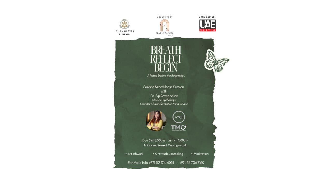 ദുബായ്: ആഘോഷങ്ങളുടെ തിരക്കുകളിൽ നിന്ന് മാറി, ശാന്തമായ അന്തരീക്ഷത്തിൽ സ്വയം തിരിച്ചറിവോടെ പുതുവർഷത്തെ വരവേൽക്കാൻ ദുബൈയിലെ പ്രവാസികൾക്ക് ഒരു അപൂർവ്വ അവസരം ഒരുങ്ങുന്നു. അൽ ഖുദ്ര മരുഭൂമിയുടെ വിശാലതയിൽ ‘Breathe. Reflect. Begin’ എന്ന പേരിൽ സംഘടിപ്പിക്കുന്ന മൈൻഡ്ഫുൾനസ് സെഷൻ, പുതുവർഷത്തെ ആന്തരിക സമാധാനത്തോടെയും പുതിയ ലക്ഷ്യങ്ങളോടെയും ആരംഭിക്കാൻ ആഗ്രഹിക്കുന്നവർക്കായി രൂപകൽപ്പന ചെയ്തതാണ്. NILYN WEAVES അവതരിപ്പിക്കുന്ന ഈ വ്യത്യസ്തമായ അനുഭവം MAPLE MOON EVENTS ആണ് ആസൂത്രണം ചെയ്യുന്നത്. യുഎഇയിലെ പ്രമുഖ മാധ്യമമായ UAE വാർത്ത (UAE Vartha) പരിപാടിയുടെ മീഡിയ പാർട്ണറായി സഹകരിക്കുന്നു.