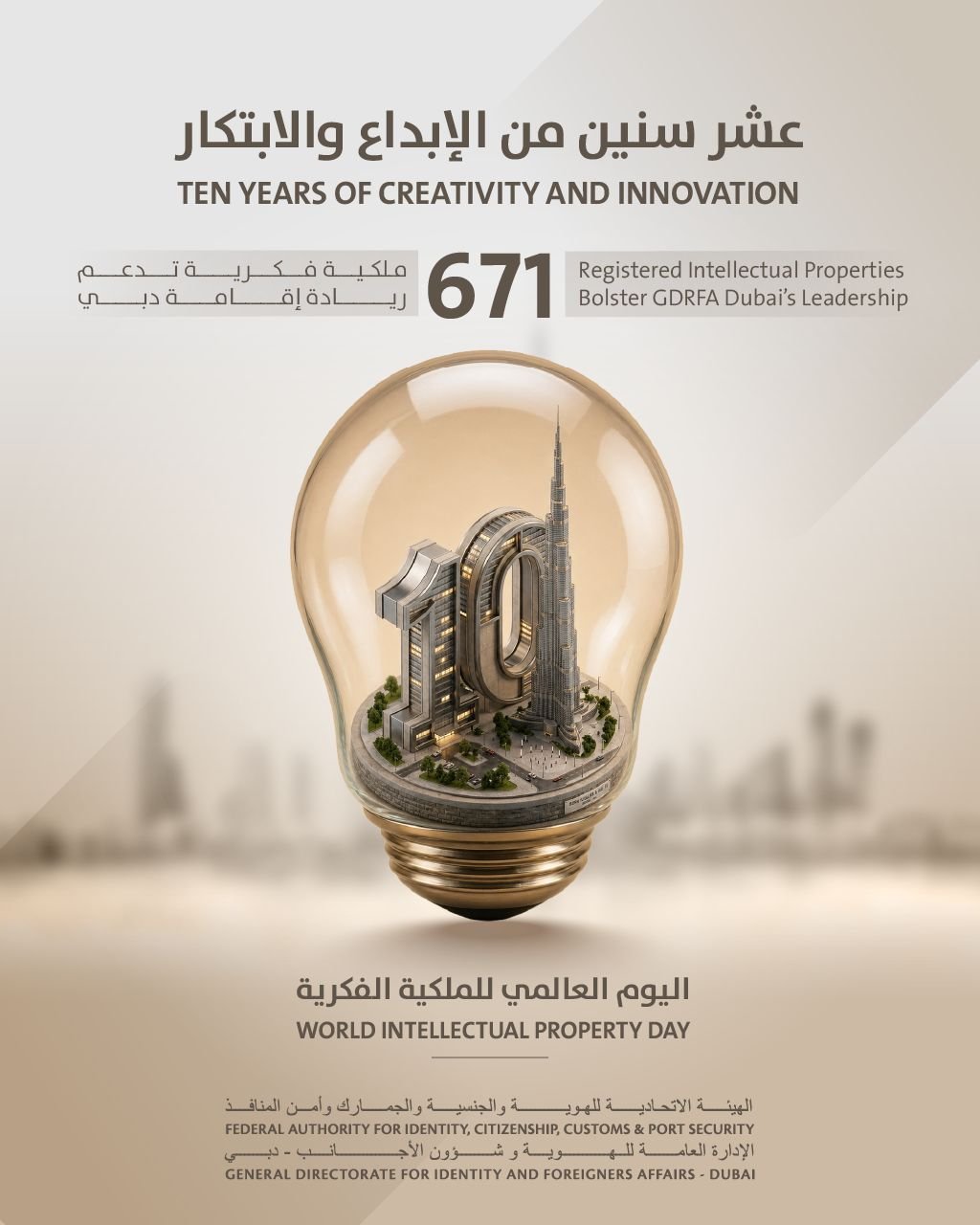 ദുബായ്: അറിവിനും നവീകരണത്തിനും മുൻതൂക്കം നൽകിക്കൊണ്ട് ഭാവി വെല്ലുവിളികളെ നേരിടാൻ സജ്ജമായി ദുബായ് ജനറൽ ഡയറക്ടറേറ്റ് ഓഫ് റെസിഡൻസി ആൻഡ് ഫോറിൻ അഫയേഴ്സ് (GDRFA). ലോക ബൗദ്ധിക സ്വത്തവകാശ ദിനത്തോടനുബന്ധിച്ച് പുറത്തുവിട്ട കണക്കുകൾ പ്രകാരം, കഴിഞ്ഞ പത്ത് വർഷത്തിനിടെ 671 ബൗദ്ധിക കൃതികളും ഇന്റലക്ച്വൽ പ്രോപ്പർട്ടി (IP) ആസ്തികളുമാണ് ജിഡിആർഎഫ്എ രജിസ്റ്റർ ചെയ്തത്. നവീകരണ രംഗത്ത് രാജ്യാന്തര നിലവാരത്തിലുള്ള മികവ് പുലർത്തുന്ന സ്ഥാപനത്തിന്റെ സുപ്രധാന നേട്ടമായാണ് ഇത് വിലയിരുത്തപ്പെടുന്നത്.