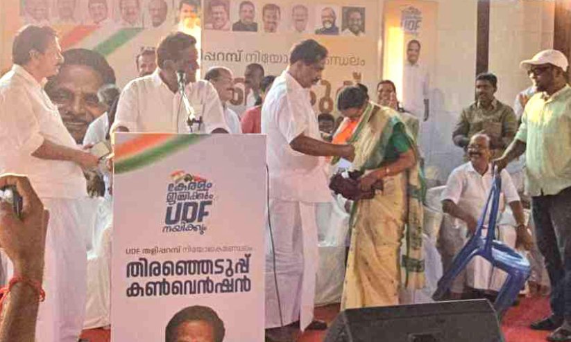 മുൻ ഇരിക്കൂർ ബ്ലോക്ക് പഞ്ചായത്ത് പ്രസിഡന്റും മലപ്പട്ടം ഗ്രാമപഞ്ചായത്ത് പ്രസിഡന്റുമായിരുന്ന രമണി, തിങ്കളാഴ്ച തളിപ്പറമ്പ് ടൗൺ സ്ക്വയറിൽ നടന്ന യു.ഡി.എഫ് കൺവെൻഷനിൽ വേദിയിലെത്തി പങ്കെടുത്തു.