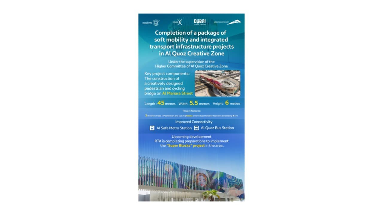 അൽ മനാര സ്ട്രീറ്റിൽ നിർമ്മിച്ച 45 മീറ്റർ നീളമുള്ള പുതിയ കാൽനട-സൈക്കിൾ പാലമാണ് പദ്ധതിയിലെ ശ്രദ്ധേയമായ ഒന്ന്. കലാപരമായ രൂപകൽപ്പനയോടു കൂടി നിർമ്മിച്ച ഈ പാലം പ്രദേശത്തെ സുരക്ഷിതമായ ഗതാഗതത്തിന് വഴിതുറക്കുന്നു. ഇതിനുപുറമെ, മൂന്ന് അത്യാധുനിക ‘മൊബിലിറ്റി ഹബ്ബുകളും’ 4 കിലോമീറ്റർ നീളത്തിലുള്ള പ്രത്യേക പാതകളും പൂർത്തിയായിട്ടുണ്ട്. ഓൺപാസീവ് മെട്രോ സ്റ്റേഷൻ, അൽ ഖൂസ് ബസ് സ്റ്റേഷൻ എന്നിവയുമായി ഈ പാതകൾ ബന്ധിക്കപ്പെട്ടിരിക്കുന്നതിനാൽ താമസക്കാർക്കും സന്ദർശകർക്കും മെട്രോയിൽ നിന്നും ബസ്സിൽ നിന്നും നേരിട്ട് തടസ്സമില്ലാതെ ലക്ഷ്യസ്ഥാനത്ത് എത്താൻ സാധിക്കും.